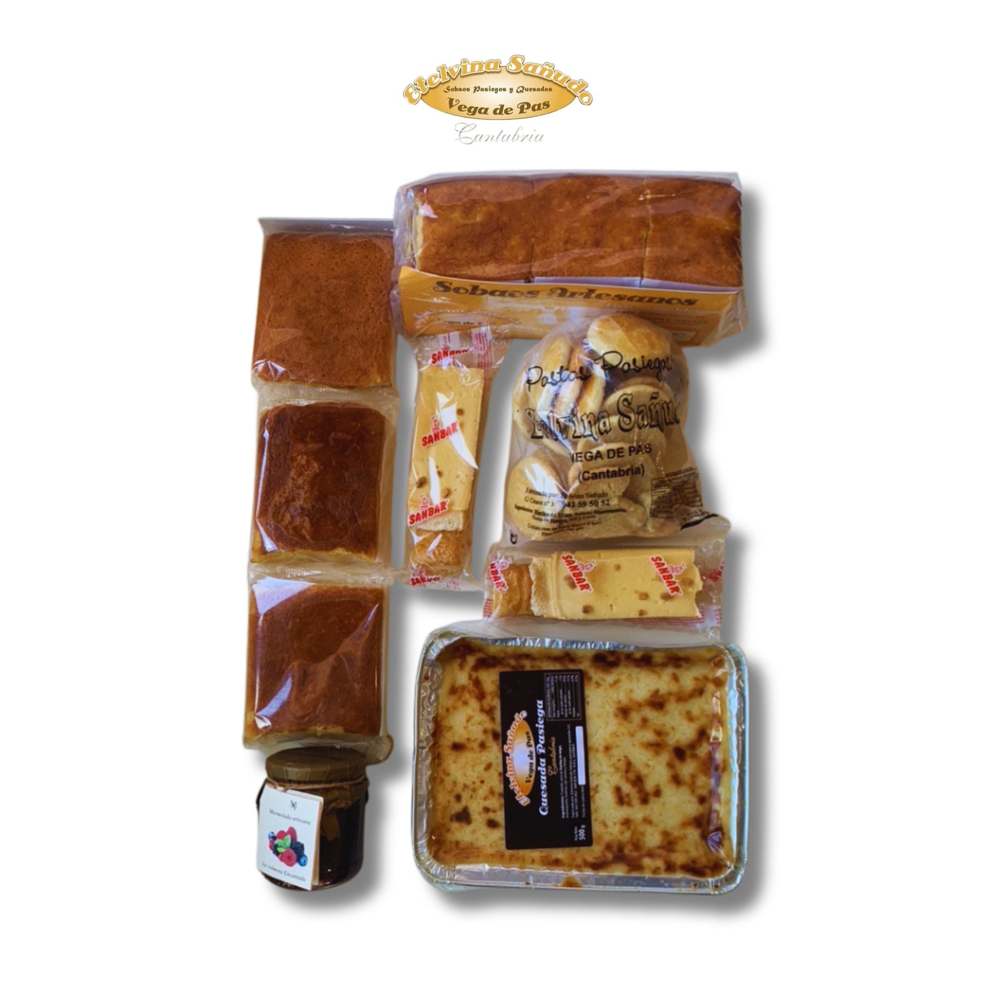 Una selección de sobaos pasiegos, quesada y dulces artesanos elaborados en nuestro obrador de los Valles Pasiegos con ingredientes naturales, sin conservantes ni colorantes y con el auténtico sabor a mantequilla de siempre.
