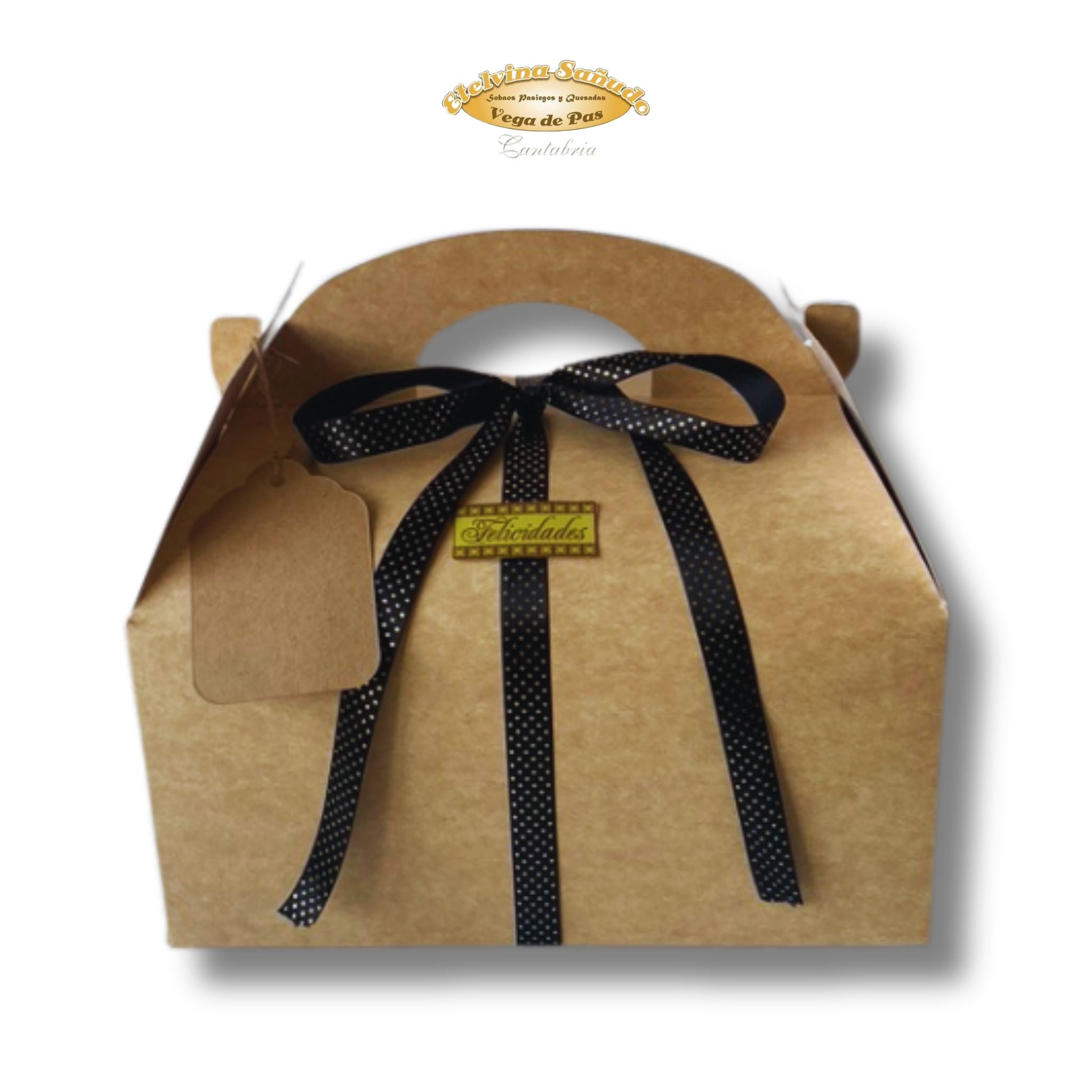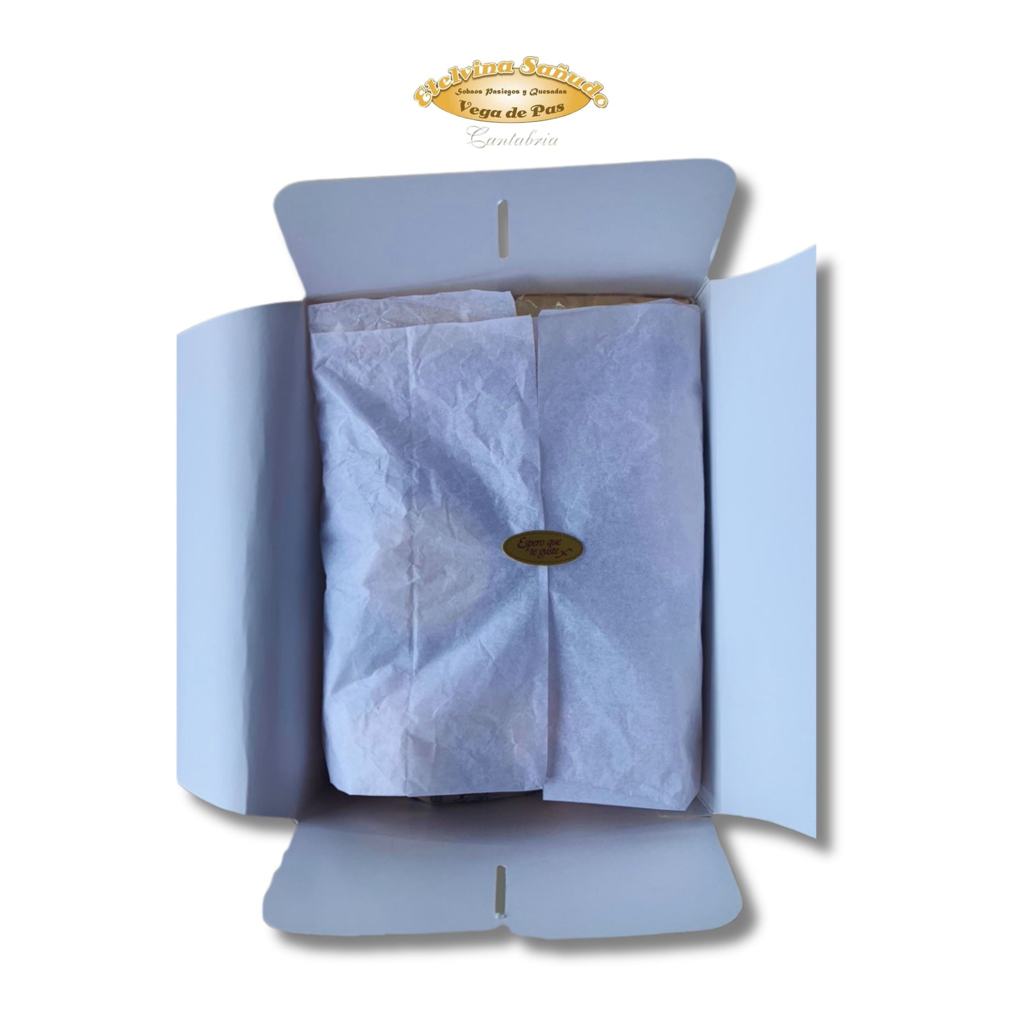 Una caja pasiega con sobaos, quesada y dulces artesanos elaborados en nuestro obrador de los Valles Pasiegos.